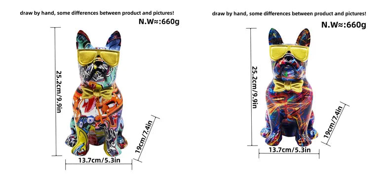 Una explosión de color y estilo contemporáneo: esta escultura de bulldog francés pintada a mano combina la fuerza icónica de la raza con un diseño inspirado en el arte urbano y el pop art. Arte urbano para mascotas | regalos para amantes de los perros | escultura bulldog francés.