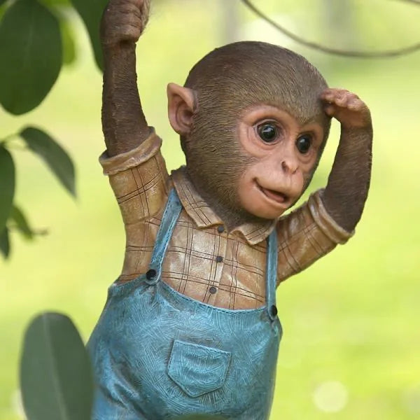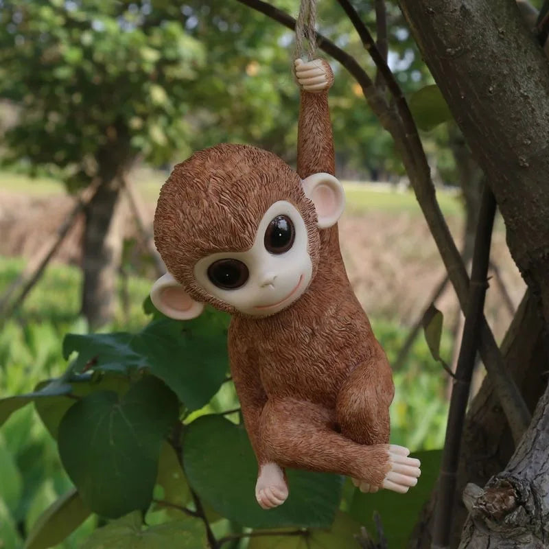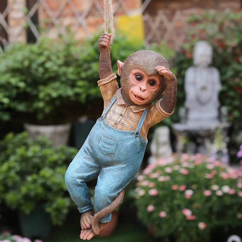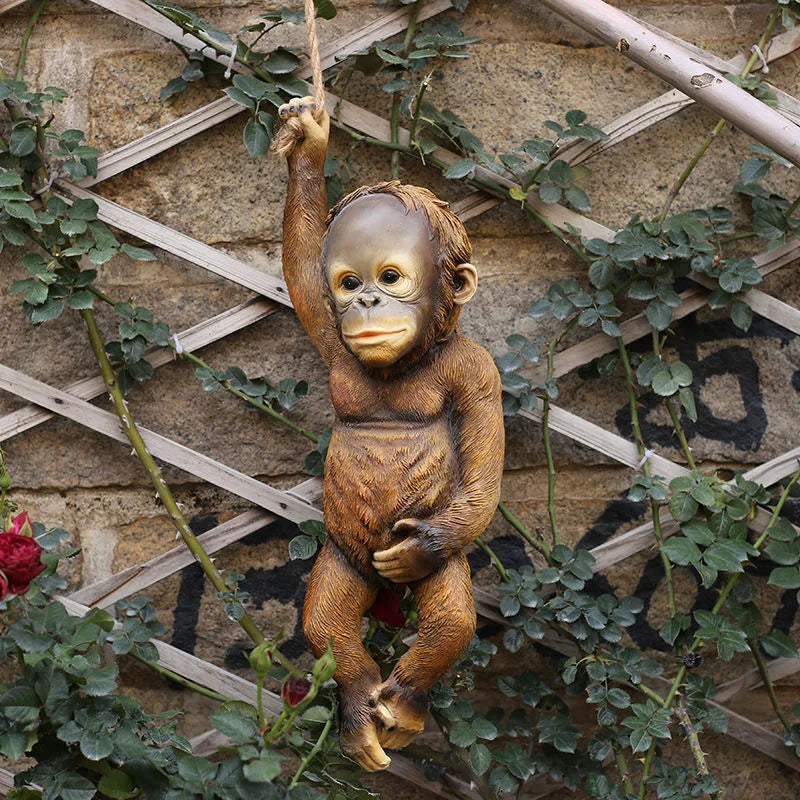 Escultura mono colgante resina | Mono decorativo jardín terraza | Adorno animal resina exterior | |Esculturas animales coleccionables | Decoración divertida jardín | Animalística resina arte | Mono colgante original