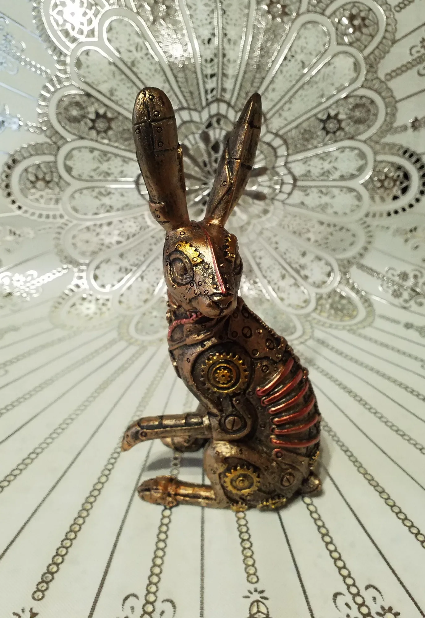 Estatua Conejo Steampunk - Figura Decorativa Resina Metal