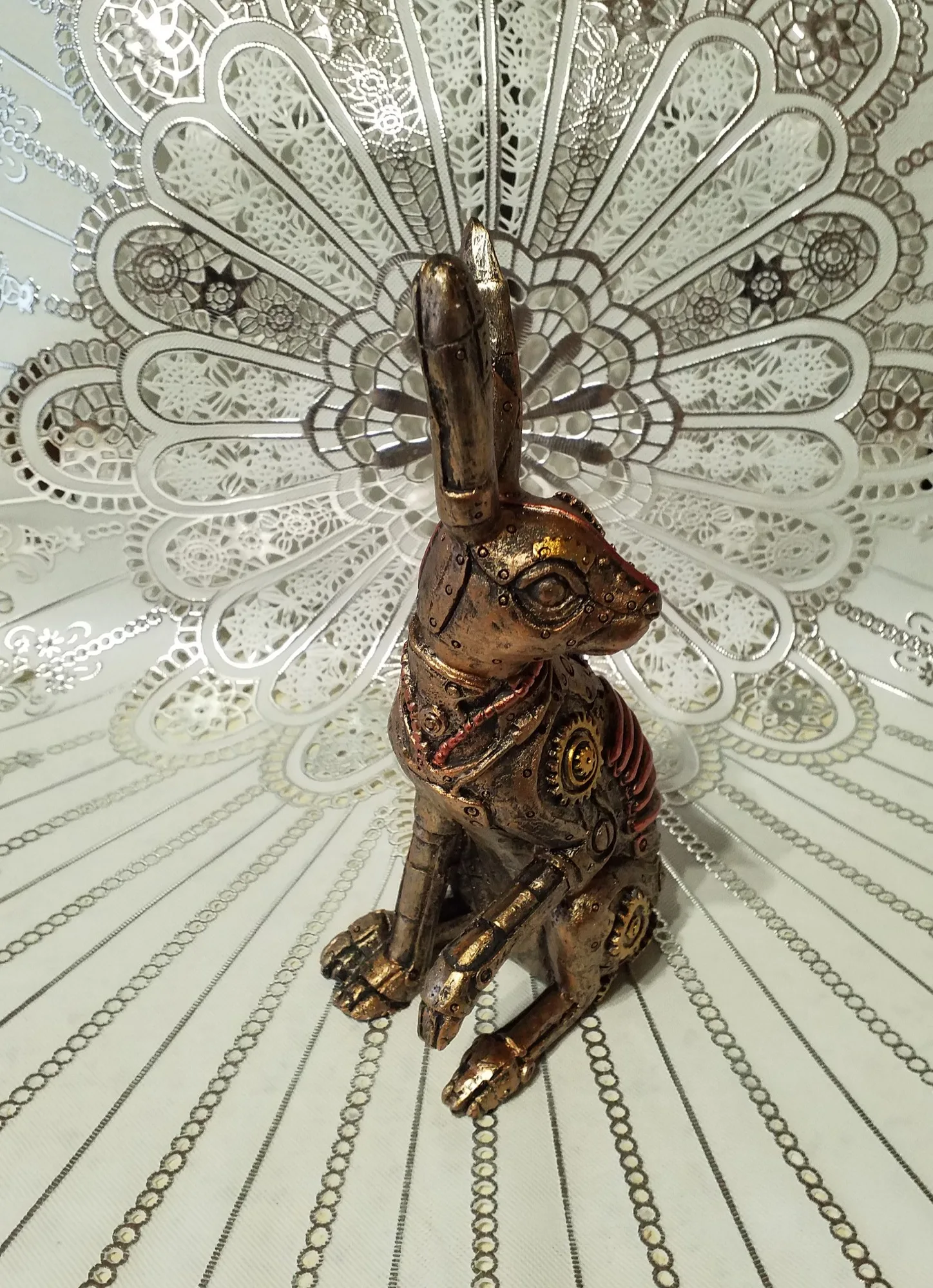 👉 Si buscas una decoración alternativa, con carácter y personalidad, esta estatua de conejo steampunk es el complemento perfecto para tu hogar u oficina.