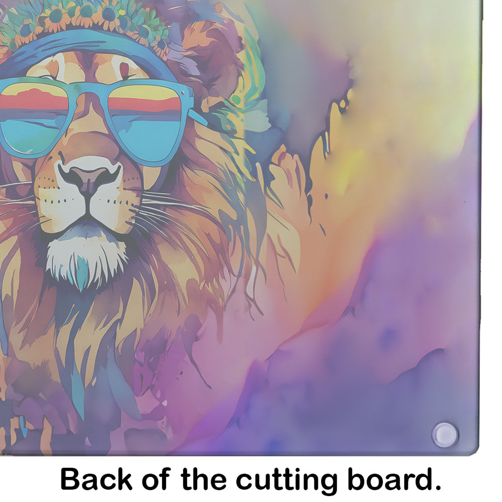 🦁 Tabla de Cortar Cristal León Hippie - Majestuosidad en tu Cocina