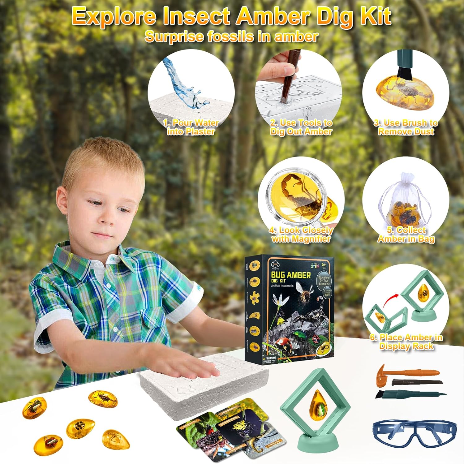 ¡Vive la emoción de Jurassic World desde casa! Descubre auténticos fósiles preservados en ámbar con este fascinante kit de excavación.