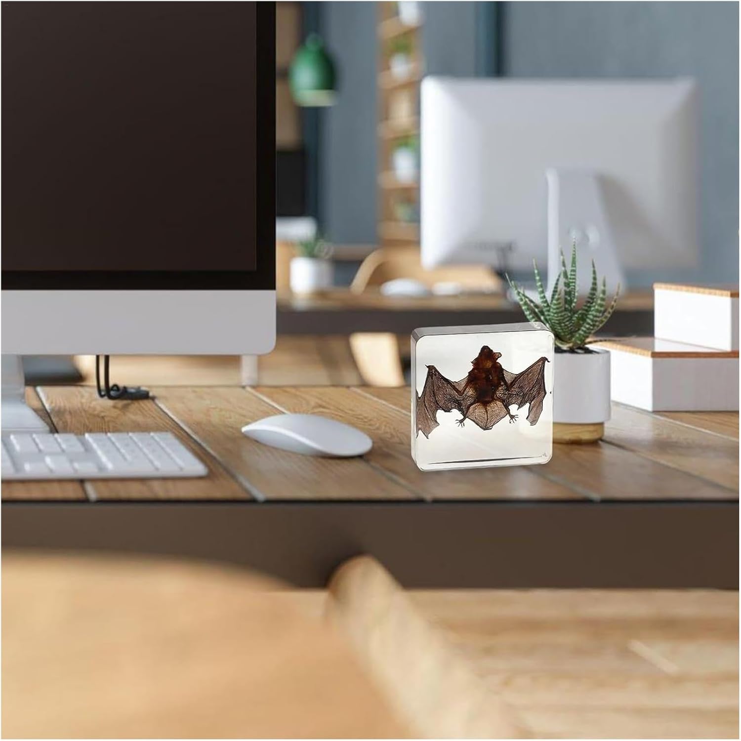 Descubre la fusión perfecta entre ciencia, arte y naturaleza con este auténtico murciélago preservado en resina transparente. Exclusivo en Animal Art. Cada pieza es única y muestra con detalle la delicada estructura de sus alas, su forma anatómica y la belleza enigmática de este fascinante animal nocturno.